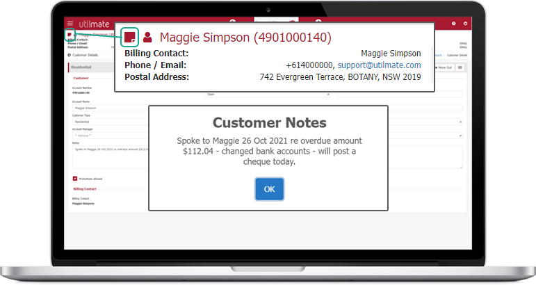 Notes are a great way to summarise customer observations and provide warnings to your customer service agents.
